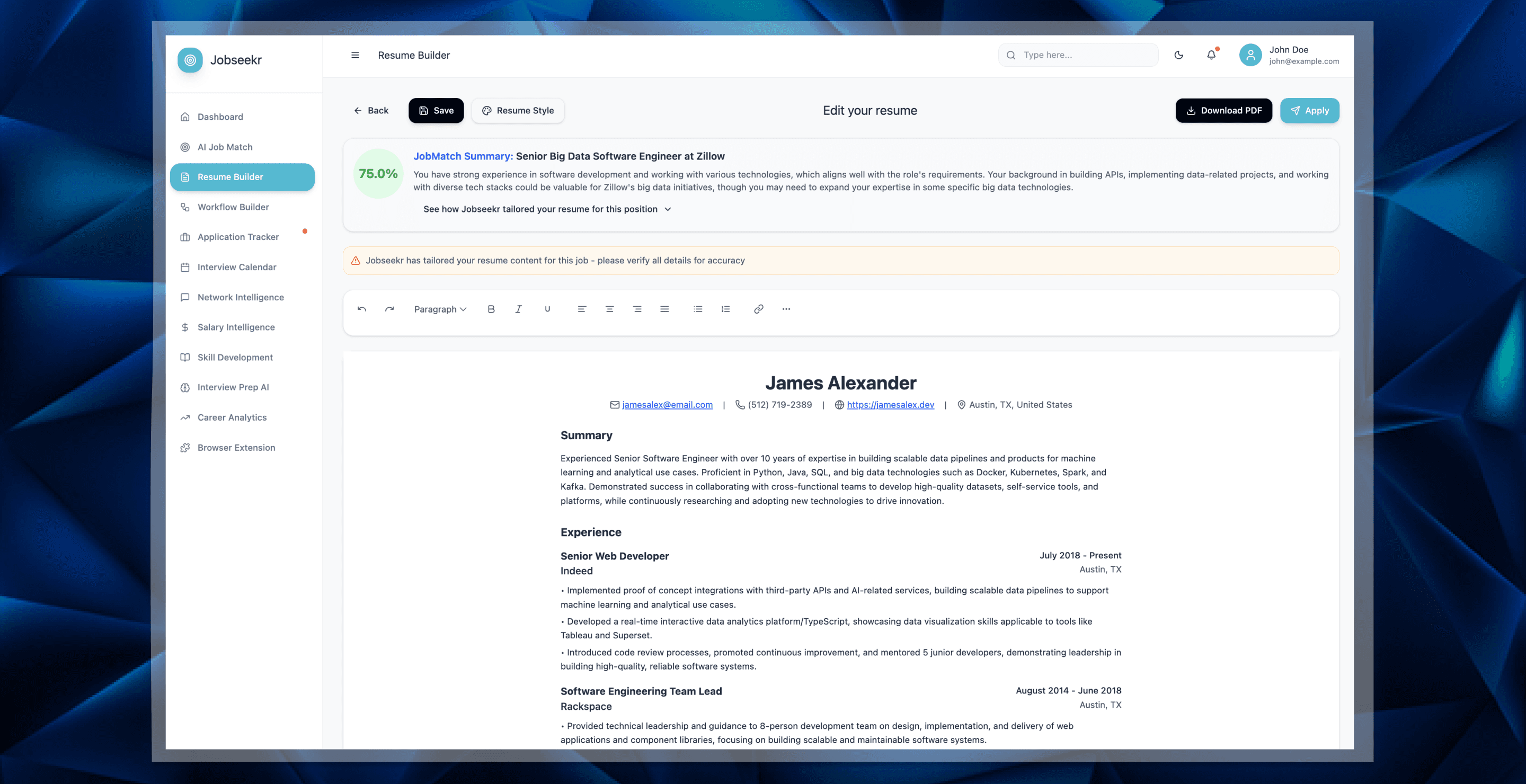 Manual and Repetitive Application Tasks: Customizing resumes, writing cover letters, filling application forms, and sending follow-ups require significant manual effort, making it difficult to scale applications without sacrificing quality.