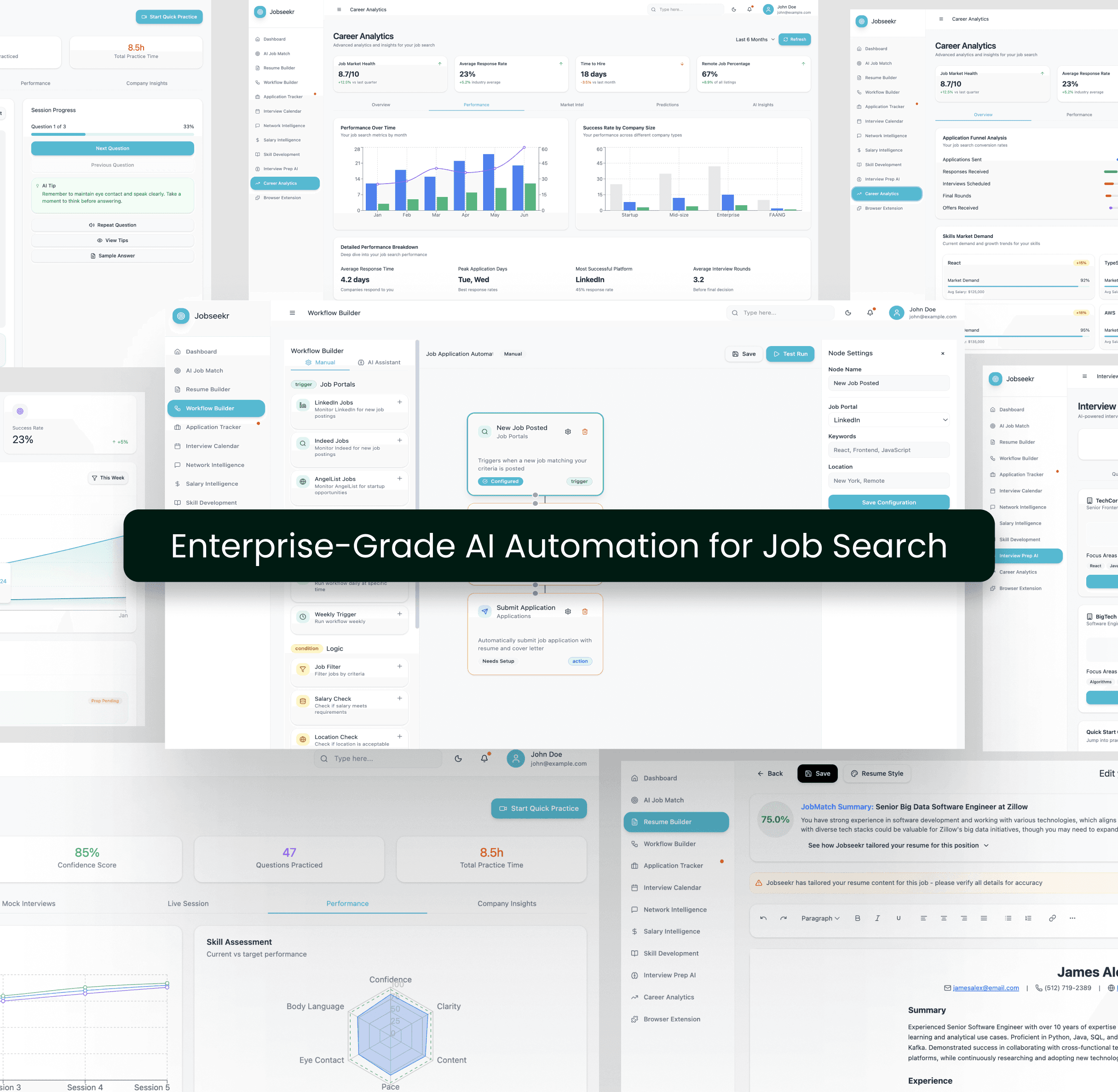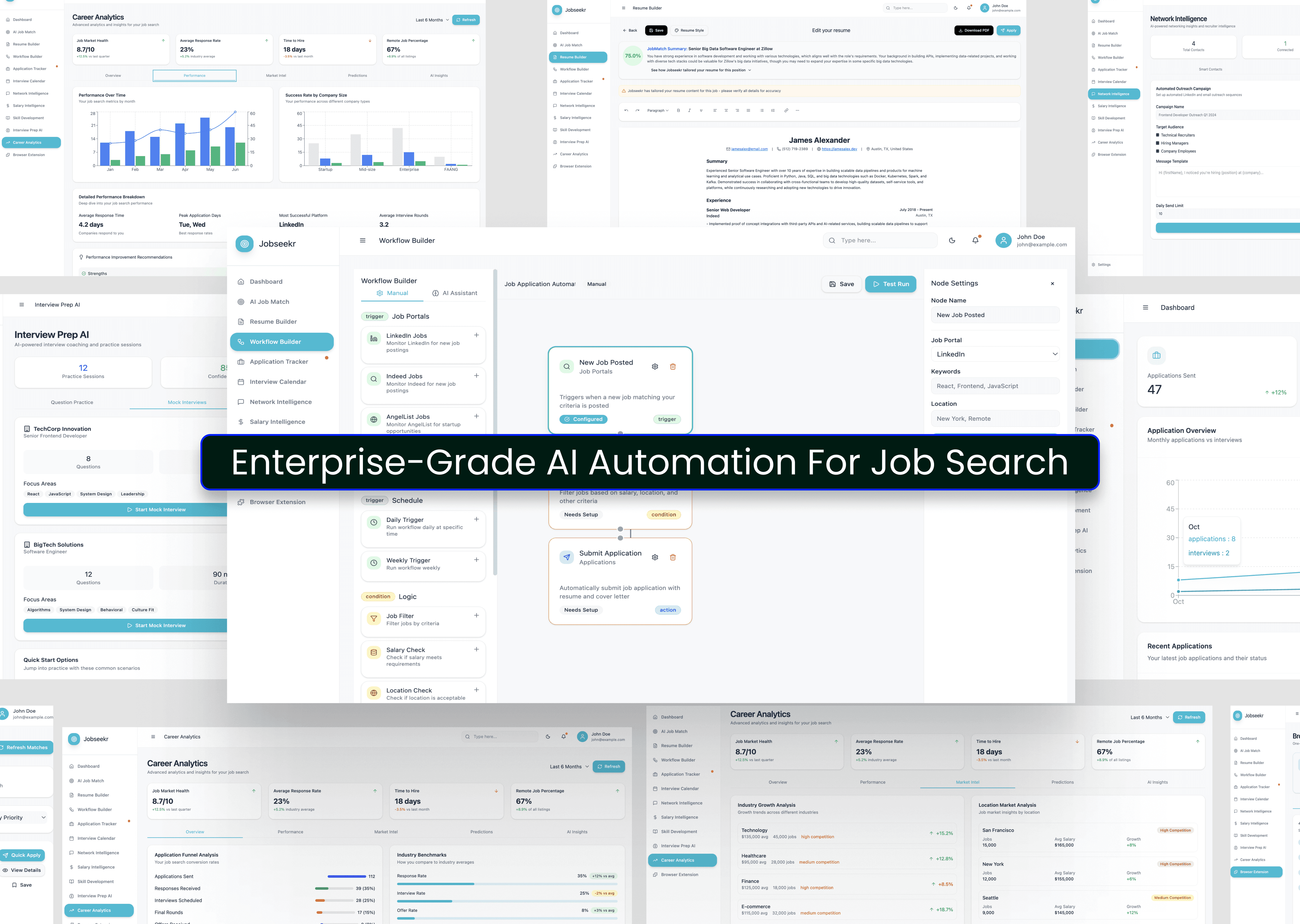 This case study presents the design of a Job Search Intelligence Platform that automates and optimizes the end-to-end job application process using AI and workflow automation. The platform integrates resume and cover letter generation, job discovery, application tracking, recruiter intelligence, interview preparation, salary analysis, and career analytics into a single system.