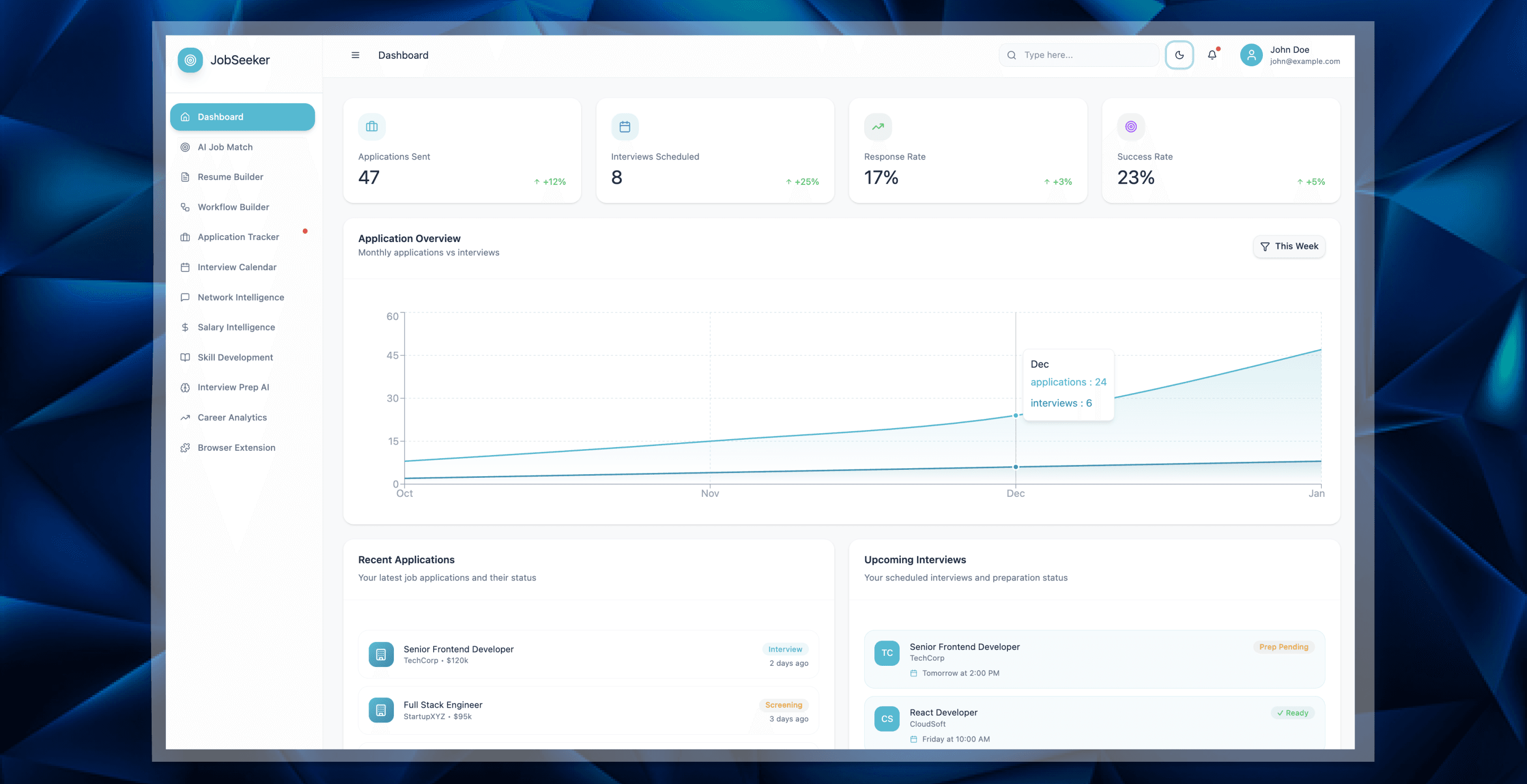 Fragmented Job Search Workflow: Job seekers rely on multiple disconnected tools for searching jobs, creating resumes, tracking applications, scheduling interviews, and following up. This fragmentation increases cognitive load and causes missed opportunities.